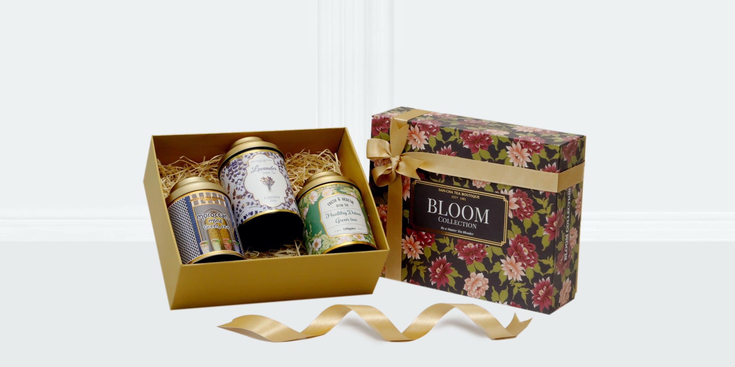 Bloom Detox Wellness Green Teas – Luxury Loose Leaf Gift Box (Lavender, Detox & Moroccan Mint)