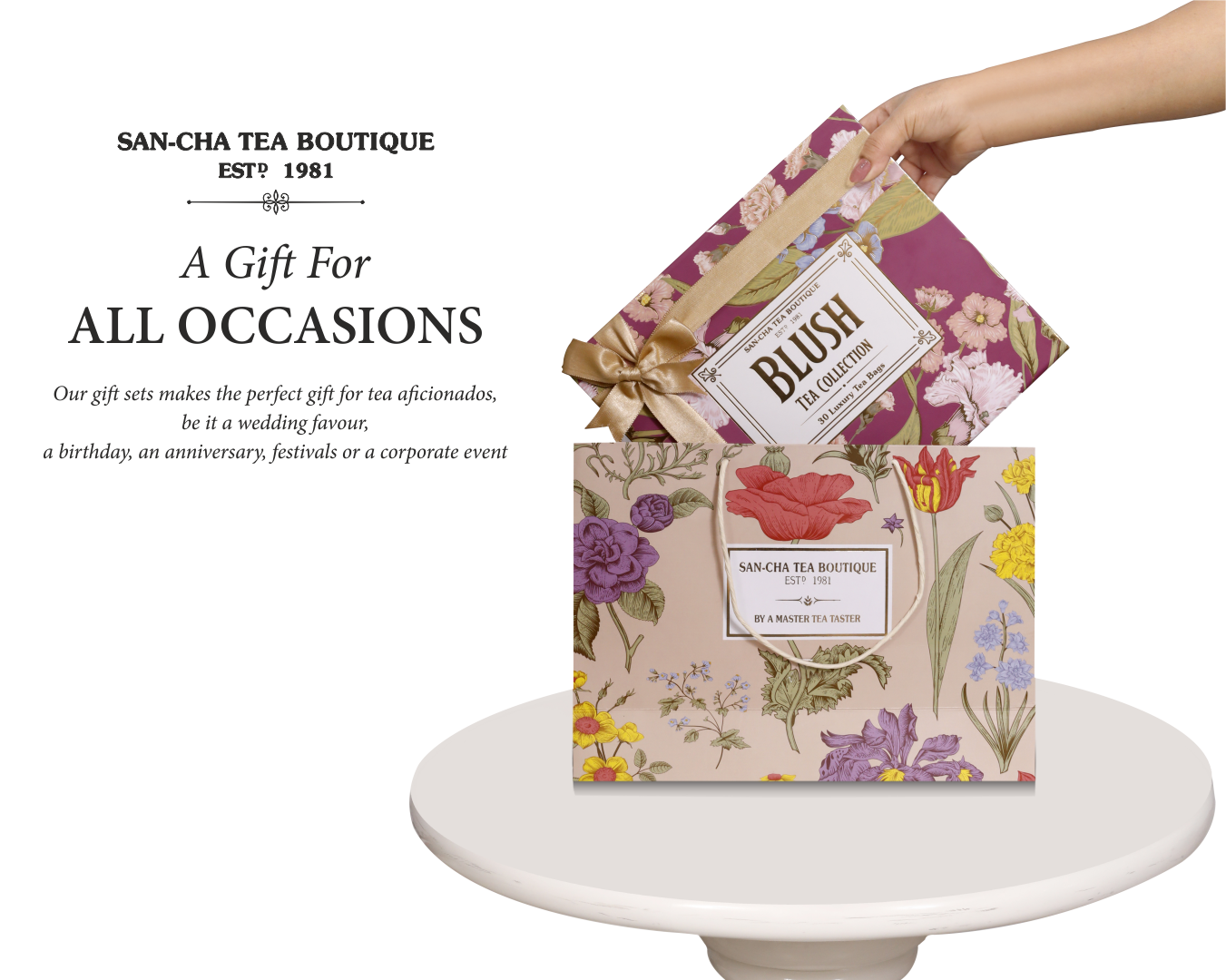 Fine gourmet teas blended with the freshest herbs, spices & botanics blended in our High Mountain Teas and presented in High Quality Printed Boxes depicting floral motifs.