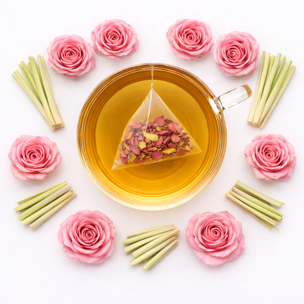 All our herbal teas are 100% natural, packed in biodegradable pyramid tea bags made from plant-based materials — better for your health and the planet.