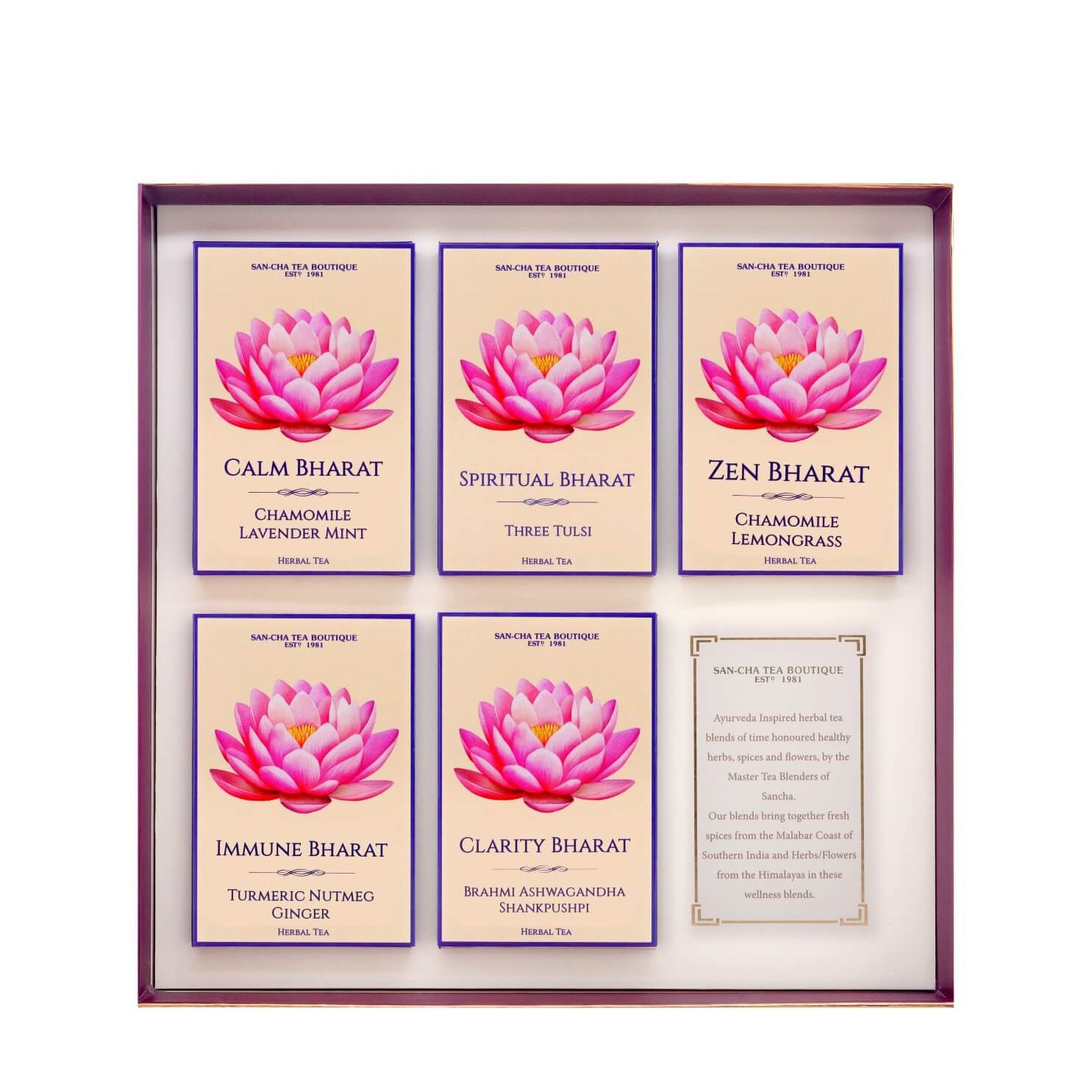 Each tea in this edit brings together time-honoured Indian herbs, spices, and flowers — sourced from the Himalayas and the Malabar Coast of Southern India — to support moments of calm, clarity, grounding, and renewal.