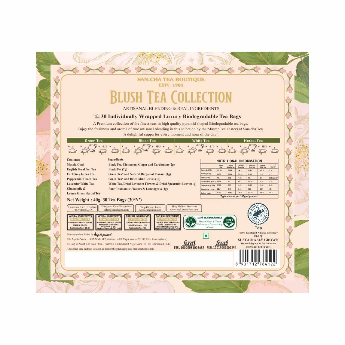 Blush Tea Selection – Luxury Pyramid Tea Bag Gift Box (30 Bags)
